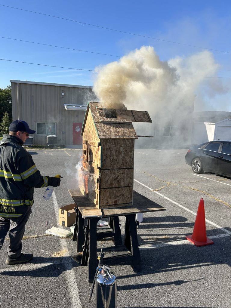 On October 2nd, Lieutenant Zach Morgan with the Martinsburg Fire Department visited the Firefighting junior class. They are currently studying fire behavior. Lt. Morgan used a “Doll House” prop constructed to demonstrate fire growth, fire behavior, smoke and heat movement, and ventilation. Thank you to Lt. Morgan and MFD for allowing him to share his knowledge, experience, and expertise with the students.